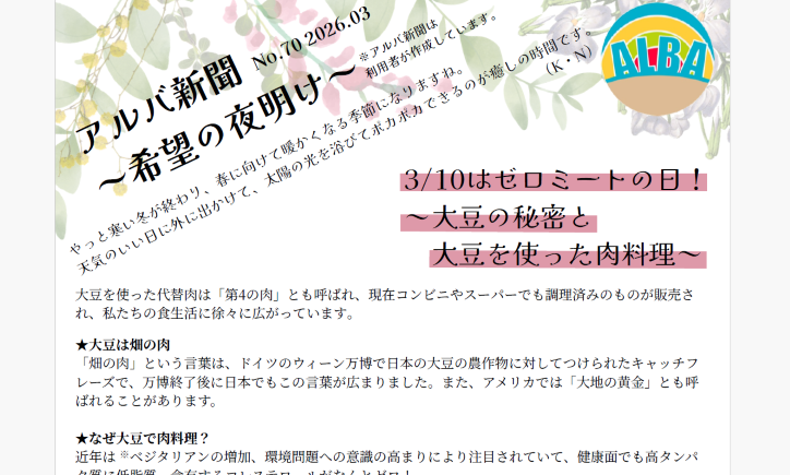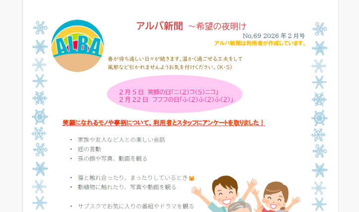 メンバーさんたちがPCスキルを学びながら、アルバでの日々を編集、発信しているアルバ新聞。過去の作品はこちらでご覧いただけます。